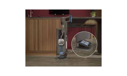 Het multifunctionele All-in-1 Station leegt automatisch het stof in een afgesloten 3,5L S-zak. Het HEPA-filtersysteem vangt tot 99,999%** op. Daarnaast laadt en bewaart het de stofzuiger en de extra accu. Inclusief reservefilters en reinigingsslang, voor moeiteloos onderhoud.